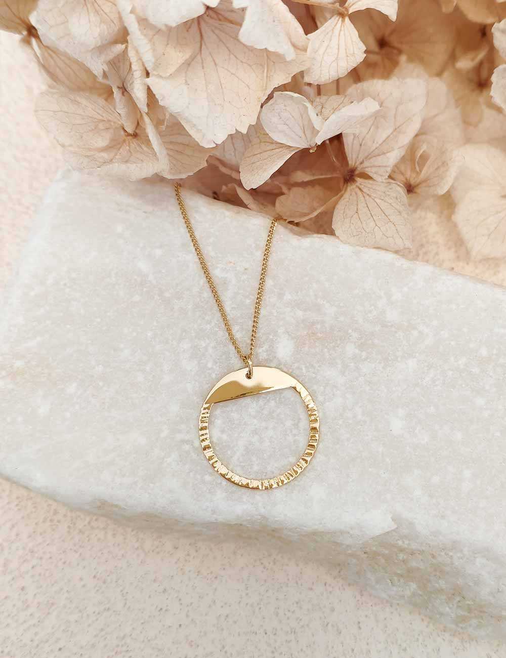 Le pendentif plissé est fabriqué à partir de matériaux de haute qualité, ce qui lui confère une grande durabilité. La chaîne fine est également réglable sur 6cm, pour ajuster le collier à votre cou.