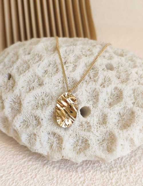 Le pendentif plissé est fabriqué à partir de matériaux de haute qualité, ce qui lui confère une grande durabilité. La chaîne fine est également réglable sur 6cm, pour ajuster le collier à votre cou.