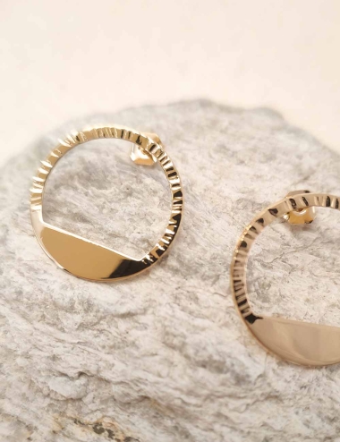Faites briller votre style avec nos Boucles d'oreilles Kadu, une fusion saisissante de texture martelée et d'ajouré délicat. L'art du détail s'exprime dans chaque trait, révélant subtilement le lob de l'oreille et ajoutant une touche d’intrigue.